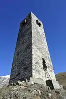Вежа Алікових височить над «містом мертвих», в кілометрі від селища, на схилі гори Рамінираг. Масиг має чотири балкончика (машикулі). Ця вежа контролювала підступи до Даргавс з боку Геналдонської ущелини. Відома також під назвою вежа Бадтієвих, які захопили вежу пізніше. Вежа сильно постраждала в результаті землетрусу в 1923 році.