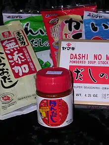 - ламінарієвий бульйон (【昆布だし】, комбу дасі) — з сушеної водорості-ламінарії (комбу);