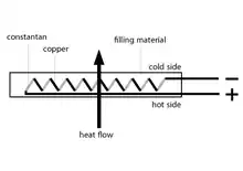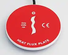 Метод вимірювання густини теплового потоку ґрунтується на вимірюванні перепаду температури на «додатковій стінці» (пластинці), що встановлюється на шляху теплового потоку[13]. Цей температурний перепад, пропорційний в напрямку теплового потоку його густині, перетворюється в термо-ЕРС (термоелектрорушійну силу) батареєю термопар, розташованих у «додатковій стінці» паралельно уздовж напряму теплового потоку і з'єднаних послідовно по сигналу, що генерується. «Додаткова стінка» (пластинка) і батарея термопар утворюють перетворювач теплового потоку.