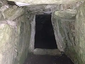 Найдовший із ходів (Північний Даут) становить 18,2 метра завдовжки, його перетинають 3 пороги і закінчується в хрестоподібній камері[6] з поперечиним (не зведеним, як у Ньюгрейнджі або Ноуті) дахом. Південний Даут завдовжки 3,5 метра і закінчується приблизно круглою камерою з сучасним бетонним дахом (початковий дах зруйнувався). У районі Північного Дауту кілька ортостатів (вертикальних каменів) проходу та камери прикрашені спіралями, шевронами, пастилами та кружечками з променями. На підлозі стоїть одинарний кам'яний басейн, розміром 1,4 м х 1 м. Праве плече хреста веде в іншу довгу прямокутну камеру з Г-подібним продовженням, що входить через низьке підвіконня, іноді званий «додатком».[7] Це може бути найраніша частина могили, пізніше введена в проект хрестоподібної могили. Цей додаток укритий плитою завдовжки 2,4 метра, що містить овальний буллаун (штучна западина). До недавнього часу до хрестоподібної могили можна було спуститися сходами в залізній клітці та повзати по пухкому камені. Зараз доступ обмежений, а всі особливості захищені металевими решітками.