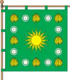 В центрі квадратного зеленого полотнища жовте шістнадцятипроменеве сонце, по периметру йде облямівка із жовтих липових листків та білих квіток липи з жовтими серединками поперемінно.