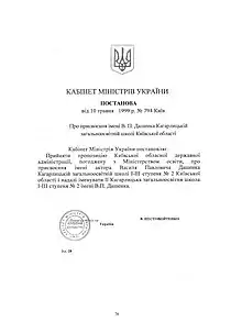 № 794 школі присвоєно ім’я Народного артиста України В. П. Дашенка.