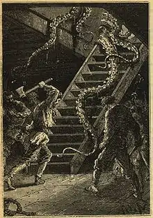 «Наутилус» прямує до Мексиканської затоки, де зазнає нападу велетенських спрутів, у бою з ними гине один з членів екіпажу, француз за національністю. Потім судно запливає в Гольфстрім і біля Ньюфаундленда відвідує залишки потонулого корабля. Аронакс здогадується, що корабель пов'язаний з минулим Немо. В липні 1868 «Наутилус» вступає в бій з військовим кораблем (національна належність якого залишається для Аронакса і його супутників таємницею) і топить його таранним ударом. Нед Ленд виявляє, що «Наутилус» перебуває неподалік від суші та пропонує, поки Немо відволікся, викрасти шлюпку, щоб втекти. Героям це вдається, проти вони потрапляють в Мальстрем — потужну водоверть, але все ж дістаються до берега Норвегії.