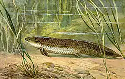 Подібним чином поводиться лусковик, або лепідосирен (Lepidosiren paradoxa), що живе в басейні Амазонки. Живляться безхребетними, рибами, земноводними. Нерест у період дощів, ікра донна.