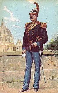 З об'єднанням Італії та ліквідацією Папської області в 1870 році , дворянська гвардія стала корпусом придворної гвардії, а її діяльність обмежилася несенням служби на території Ватиканського палацу. Хоча номінально вона все ще була кавалерійською гвардією, підрозділ мав мало можливостей для розгортання на конях в обмежених межах Ватикану, хоча два гвардійці, як і раніше супроводжували папську процесію під час прогулянок у всіх садах Ватикану. У 1904 році кінна служба була скасована, а останні коні були продані.
