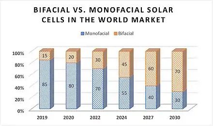 Двосторонні сонячні елементи та двосторонні сонячні панелі (що з них складаються), були винайдені та вперше виготовлені для космічного та земного застосування в кінці 1970-х років, і стали основними технологіями сонячних елементів у 2010-х. Передбачається, що двосторонні сонячні панелі, займуть найбільшу частку ринку у виробників фотоелектричних сонячних елементів до 2030 року.