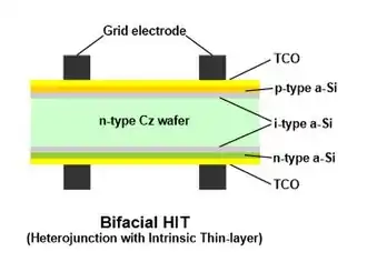 - Здебільшого виготовляється (напр Panasonic, Hanergy ) на пластині c-Si типу n
