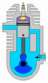1. При русі поршня вгору — стиснення паливо-повітряної суміші у поточному циклі та засмоктування суміші для наступного циклу у порожнину під поршнем