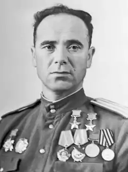 заступник командира 76-го гвардійського штурмового авіаційного полку 1-ї гвардійської штурмової авіаційної дивізії 1-ї повітряної армії 3-го Білоруського фронту, гвардії майор |