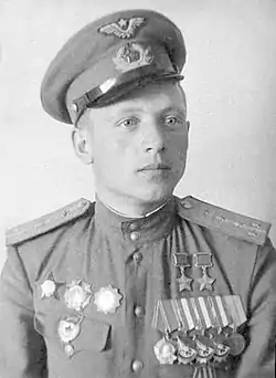 командир ескадрильї 141-го гвардійського штурмового авіаційного полку 9-ї гвардійської штурмової авіаційної дивізії 2-ї повітряної армії 1-го Українського фронту, капітан |