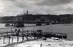 1) плавуча пристань, причальна споруда у вигляді судна або понтона, стаціонарно встановленого (зазвичай в річковому порту) і призначеного для стоянки вантажних і пасажирських суден;