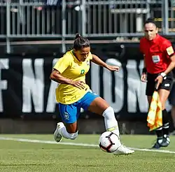 18 лютого 2021 року в переможному (4:1) для Бразилії поєдинку SheBelieves Cup 2021 проти Аргентини провела свій 100-ий матч за національну збірну.