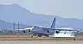 Транспортний літак Ан-124-100, що перевозить 2 французьких рятувальних вертольоти EC725 Caracal, сідає на аеродром. 2 травня 2014