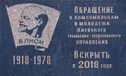 Радянська меморіальна дошка «Звернення до комсомольців та молоді КТТУ 2018 року» (буд. № 7-б)