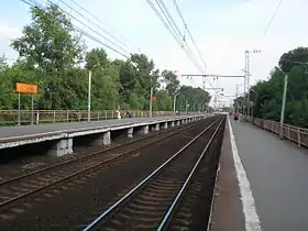 Складається з двох берегових платформ, з'єднаних між собою настилом через колії. Віднесено до другої тарифної зони, не обладнана турнікетами. Є пряме сполучення на Смоленський (Білоруський) напрямок.