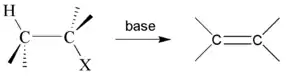 При цьому карбоаніони або карбокатіони не утворюються, тому що відщеплення гідрогену та галогену відбувається одночасно.