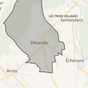 - Розташування муніципалітету Дезандан на мапі Франції та сусідні муніципалітети