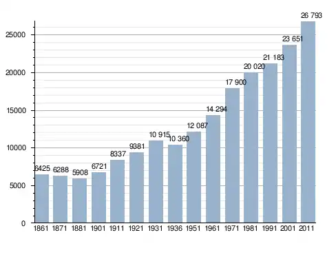 Станом на 31 грудня 2014 року в муніципалітеті офіційно проживали 3963 іноземці з 87 країн, серед них 1063 громадяни країн Євросоюзу та 276 громадян України.[4]