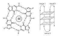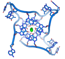 Послідовності з високим вмістом гуаніну стабілізують кінці хромосом, формуючи дуже незвичайні структури, які називають G-квадруплексами і які складаються з чотирьох, а не двох взаємодійних основ. Чотири гуанінових основи, всі атоми яких знаходяться в одній площині, утворюють пластинку, стабілізовану водневими зв'язками між основами та хелатованим у центрі іоном металу (найчастіше калію). Ці пластинки складаються стопкою одна над іншою[52].