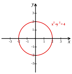 Використовуючи декартову систему координат, геометричні фігури (а також криві) можливо описувати за допомогою алгебричних рівнянь, які містять координати точок, що належать фігурі. Наприклад, коло з радіусом 2, із центром у початку координат, можливо задати як множину всіх точок, координати x та y яких задовольняють рівнянню x2 + y2 = 4.