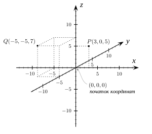 Координати в тривимірному просторі формують трійку (x, y, z).