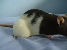 - Плямистий (Varigated) — голова і плечі пофарбовані, має бути пляма (на лобі) або блейз. Решта ділянок верхньої частини тіла щура білі з плямами. Нижня частина тіла біла.