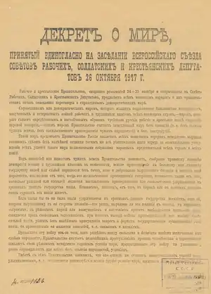 Декрет про мир 1917 — перший зовнішньо-політичний акт уряду Радянської Росії — Ради народних комісарів. Проект підготовлений Володимиром Ульяновим, ухвалений 26 жовтня (8 листопада) 1917 року Другим Всеросійським з'їздом рад.