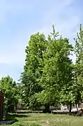 Поблизу будинку № 3/5 зростає дерево «Дуб-Хитрун», його вік — близько 600 років, обсяг — 5,75 м, висота — 25 м. Поблизу будинку № 12 ростуть два дуби віком близько 300 років, їх обсяг — 3,8 і 4 м, висота — 20 м. Також є залишки парку — інші вікові дуби і липи.