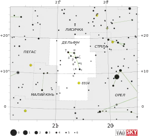 | Найяскравіша зоря | Бета Дельфіна 3,64m |