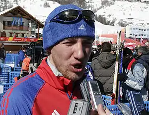 ![]() Євгеній Дементьєв в мікс-зоні на фініші 50-кілометрової олімпійської гонки в Турині 2006 року відповідає на запитання журналістів Євгеній Дементьєв в мікс-зоні на фініші 50-кілометрової олімпійської гонки в Турині 2006 року відповідає на запитання журналістів | |||||||||||||||||||||