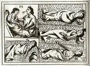 Одним з найбільш руйнівних захворювань була віспа, але інші смертельні захворювання включали тиф, кір, грип, бубонну чуму, холеру, малярію, туберкульоз, епідемічний паротит, жовту лихоманку і коклюш, які були хронічними в Євразії.[30]