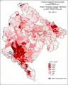 Поширеність чорногорців у Чорногорії за поселеннями (2003)