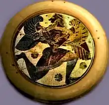 ![]() Крилатий даймон на античній тарелі з Коринфа |