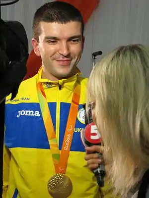 ![]() Андрій Демчук в аеропорту «Бориспіль» після повернення з літніх Паралімпійських ігор 2016 року в Ріо-де-Жанейро. Андрій Демчук в аеропорту «Бориспіль» після повернення з літніх Паралімпійських ігор 2016 року в Ріо-де-Жанейро. | ||||||||||||||||||||||