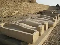 Під храмом епохи Птолемеїв лежать будівлі попередніх епох, найдавніші можуть бути віднесені до царювання будівельника Великої піраміди — Хуфу.