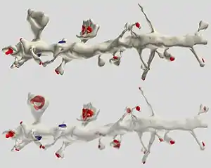 Дендритні шипики формують біохімічний та електричний сегмент, де сигнали, що надходять, вперше інтегруються та обробляються. Шия шипика розділяє його голову від іншої частини дендрита, тим самим роблячи шипика окремим біохімічним та обчислювальним регіоном нейрона. Подібна сегментація відіграє ключову роль у вибірковій зміні сили синаптичних зв'язків протягом навчання та запам'ятовування[34][39]. Із шипиками також пов'язані патологічні зміни, оскільки їх щільність зменшується при багатьох вікових та психоневрологічних захворюваннях, (як деменція, хронічний алкоголізм, шизофренія, трисомія)[38].