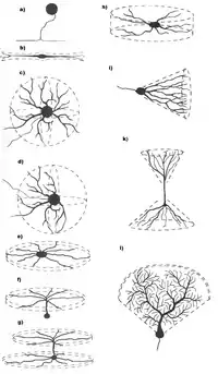 Одна з прийнятих, але і найважчих, в нейробіології класифікацій нейронів (започаткована Кахалем) ґрунтується на їх дендритній структурі і густоті. Однак, з іншого боку, є нейрони, які не мають дендритів («адендритні нейрони»), але тільки розгалужені аксони (наприклад, нейрони чутливих вузлів спинномозкових нервів симпатичного ганглія), а є нейрони із надто складними дендритами. До нейронних типів із найбільш характерними дендритними формами належать[1]: