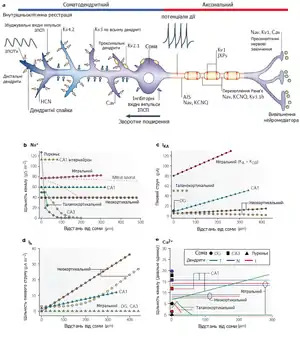 Дендрити, відтак, є електрично розподіленими «механізмами», тож нейрони не є еквіпотенціальними, — як їх моделювали в класичних теоріях, — бо між різними регіонами дендритного дерева (і соми) може існувати десятикратна різниця напруг, як результат локального синаптичного входу до дендритів