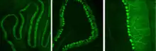 - Varicosities (варикозно розширені) — синапси, найбільше яких на амакринових клітинах сітківки, а також серед деяких інтернейронів.
