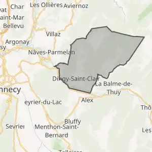 Муніципалітет розташований на відстані[2] близько 440 км на південний схід від Парижа, 110 км на схід від Ліона, 7 км на схід від Аннесі.