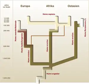 Денисівська людина (Людина з Денисової печери, Denisova hominin) — імовірно новий вид вимерлих людей, відомий по вкрай фрагментарному матеріалу, виявленому в Денисовій печері (Алтай), а також у печері Байшия у Схудному Тибеті. Це другий вид вимерлих представників гомінін, для якого став відомий повний мітохондріальний і майже повний ядерний геноми, які й дозволили пролити світло на приналежність цих решток. Рештки людини з Денісівської печери датуються близько від 217 000 до 50 000 років тому. Найдавніші артефакти з печери зараз оцінюються у 287 000 років. Вчені припускають, що денісівська лидина могла жити на Новій Гвінеї до ХІІІ тис. до н.е. Вид жив близько 40 тисяч років тому і мав ареал, що перетинається за часом і місцем з територіями, що населялись неандертальцями і сучасними людьми[1][2], проте їх поява викликана міграціями з Африки, відмінними від переселень Homo erectus, неандертальців і сучасних людей[3].