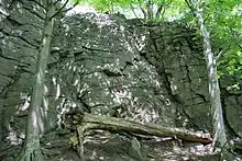 - Скелі на березі Тетерева, відомі як скелелазний район.