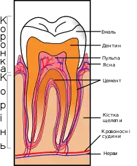 Дентин (dentinum, LNH; лат. dens, dentis — зуб) — мінералізована тканина зуба, складається в основному з гідроксиапатиту (70 — 72%), просоченого солями кальцію й пронизаного дентинними канальцями й колагеновими волокнами. Слугує основою зуба і підтримує зубну емаль. Товщина шару дентину коливається від 2 до 6 мм. Твердість дентину досягає 58,9 кг/мм².