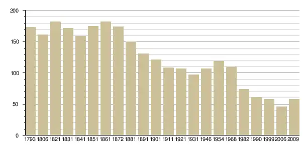 Динаміка населення (base Cassini de l'EHESS pour les nombres retenus jusque 1962[3], base Insee à partir de 1968 (population sans doubles comptes puis population municipale à partir de 2006)[4] · [5] ):