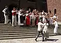Артисти виконують народний шведський танок перед міською ратушею м. Стокгольма.