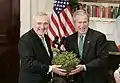 Прем'єр-міністр Ірландії Берті Агерн дарує горщик з конюшиною Президентові США Джорджеві Бушу, 17 березня 2005 р.