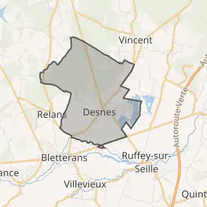 Муніципалітет розташований на відстані[2] близько 330 км на південний схід від Парижа, 70 км на південний захід від Безансона, 12 км на північний захід від Лонс-ле-Соньє.
