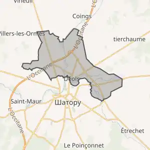 - Розташування муніципалітету Деоль на мапі Франції та сусідні муніципалітети