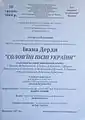 - Дипломом І ступеня загальнонаціонального конкурсу «Українська мова – мова єднання» (м. Одеса, 2009);