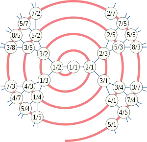- Будь-який нескортний раціональний дріб зустрічається в дереві рівно один раз.